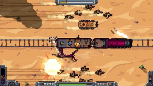 Apocalypse Express 挑战玩家引导火车穿过敌人居住的土地。目标是离开这个他一生都作为家的避难所,看看外面世界的遗迹。此旅程中唯一的参考点是一张地图,上面标记了过去的位置。要做到这一点,你需要带领火车穿过敌对领土,击退敌人的持续攻击,而任务的成功取决于控制和保护移动平台的能力。玩家将不得不将注意力分散在灭火、修理车辆、收集资源和击退攻击之间。各种系统都会失败,计划会落空,这需要快速响应和确定优先级,以保持机器运行。这款动作游戏的机制设计方式是不可能同时跟踪所有内容,这迫使您不断地与火车的不同系统互动。该配置可以配置为公开战斗,使用大炮、炮塔和火箭发射器的武器库来消灭对手。或者,可以组装一个防御结构,旨在使敌人失去能力、阻挡射击和控制伤害,同时保持车辆的完整性。其他选项也可用,例如创建高速汽车或完全自主系统。