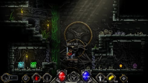Godstone 中的用户将穿过充满怪物的黑暗地牢。有 5 个不同的巫师可供选择,您可以与他们一起探索 Viritian 的废墟。主角的主要任务是找到丢失在阴暗地下墓穴深处的珍贵神石。该游戏是一款具有 roguelike 元素的大气地牢爬行游戏,您需要在具有侧视图的二维位置中漫游角色。Godstone 中的冒险允许用户:探索 Viritians,那里有秘密房间和隐藏的门.使用道具或卷轴搜索丢失的物品.使用“协同”与敌人战斗,这是一种特殊类型的魔法组合打击.获得经验并升级主角,选择所需的技能.面对危险可以比房间还大的地点的怪物和老板,死亡时,通过花费血树点数、改变策略或建造来升级英雄,故事情节讲述了阴险的锡拉蒂克教团,他们想找到一个强大的神器,并在它的帮助下摧毁巫师。必须与对手对峙,进入地下,希望能在对手之前找到神石。您将不得不面对随机形成的房间和随机出现在每个关卡中的怪物。死亡后,您可以更改角色或升级所选角色以获得累积的经验值。