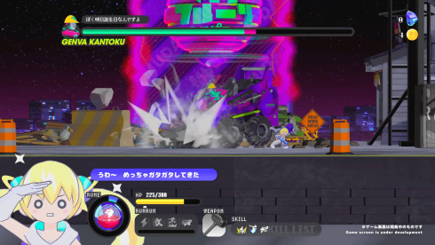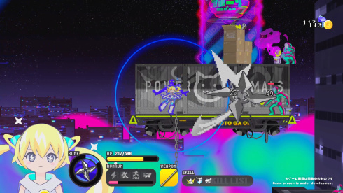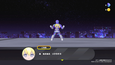CONERU -DIMENSION GIRL- 将他的 2D 平台动作游戏展示为与跨维度女孩的约会。玩家控制苏格拉底,一个战斗机器人,其身体与来自另一个维度的生物 Koneru 共享。这种共同的存在定义了他们的目标:反击 Cheeky Fruit Company,这是一个对新宿市发动入侵的外星组织,这个标题提供了单人游戏体验,体现了两个角色的联合活动,将战斗目标与他们的联合冒险的发展相结合。CONERU -DIMENSION GIRL- 的玩法将两位英雄的能力以单一的形式结合在一起。苏格拉底使用玩家选择的武器打击近距离目标,而该生物则使用其 Koner Beam 从远处攻击。光束的属性和力量取决于她的心情,新的配置可以在会合期间出现。这种机制需要他们的同步来执行针对外星入侵的组合动作,因为他们的单独打击结合起来以增加他们的力量。入侵者的动机仍然未知,因为这对二人组经历了各种战斗。Lifting up Koneru 还会激活一个名为 Joy Mode 的特殊子模式。当满足某些条件时,她的情绪会改善,导致移动速度和能量释放激增。这种加速提供了战术优势,要求玩家以越来越快的速度和越来越大的力量进行精确控制。