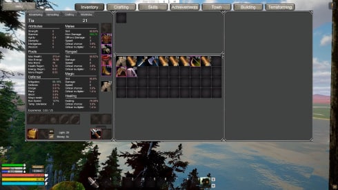 Solace Crafting 将角色扮演游戏与开放世界生存模拟器和沙盒相结合。该项目使用第三人称视角。它可以单独玩,也可以与朋友一起玩。此外,单人和多人游戏的内容略有不同。与朋友或随机用户的会话可以在线和通过局域网 (LAN) 进行。这些控件是为使用键盘和鼠标而定制的。但也有对游戏手柄的部分支持。这里的地图是无尽的。复杂性也很困难。它随着玩家覆盖的距离而增加。每行驶一公里,怪物和资源就会增加一个等级。为了更轻松地在地形中导航,开发人员增加了能见度范围,并增加了对资源(尤其是稀有资源)的照明。可以绘制通往不同生物群落的路线并建造具有中世纪奇幻背景 teleporters.SC。一开始,用户被提议创建一个英雄并为他想出一个名字。这里没有阶级制度。相反,游戏让您有机会为英雄或女主角使用不同的能力。有 4 个技能树、8 个职业树和 240 个技能节点可用。它们分为几类:战斗、制作、收集、法术。玩家可以混合它们并根据需要分配属性点。所有新角色都穿着内衣,手里拿着镐子出现在地形上。起初,您需要寻找食物并获取资源。您可以制作物品、耕种和建造建筑物。战利品和制作的物品具有不同的等级、颜色和稀有度。该结构系统允许您以高达一厘米的精度快速放置物体。您可以建造城市建筑来召唤各种工匠并使用他们的服务。它们还允许您优化城市本身。