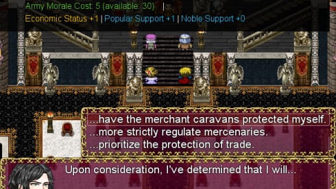 Noblesse Oblige: Legacy of the Sorcerer Kings 结合了探索、回合制战斗和统治者管理。标题讲述了亚历山大的故事,亚历山大是一位贵族,他被剥夺了祖先的权利,被迫在内战中收回自己的土地。游戏建立在情节原则之上,定期发布新章节,保持与旧保存的兼容性。用户控制亚历山大和他的同伴,他们在广阔的世界中处理政治、个人关系和军事战略。相反,它促进了明智的决策和各种策略的使用。每个党员都有自己的能力和优势,让游戏玩家可以创造性地进行战斗。忠诚度在角色发展中起着重要作用,根据整个游戏中所做的选择解锁新的能力和内容。与盟友的关系会根据用户的行为而变化,这增加了叙事和游戏玩法的复杂性。有关经济、军队和支持系统的决策会影响王国的成功和亚历山大的最终命运。该标题还允许用户自定义他们的城堡,这进一步增强了控制感和沉浸感。虽然亚历山大面对外部敌人,但更黑暗的问题在于他自己的宫廷以及与他的盟友、对手和敌人建立的复杂关系中。