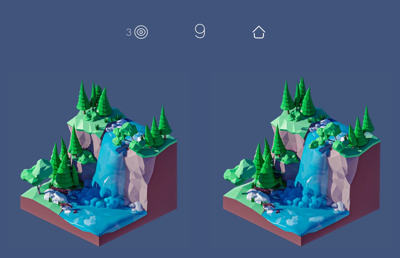 Find The Flaw 在 3D 等距位置提供发现差异的游戏玩法。用户从这样的角度检查场景,以检测两张图片之间的差异。主要任务是在详细级别查找差异。这种娱乐的本质是基于对图像中微小变化的识别。在 Find The Flaw 中,游戏玩家探索充满许多物体和细节的特殊世界。目标是发现每个设置中存在的隐藏不一致之处。只需单击发现的差异,系统就会记录下来。通过鼠标单击与环境交互以标记发现的差异。每个世界都提供一组独特的物品和自己的主题,需要调整搜索策略。进度取决于在当前级别找到所有固有的变化。该项目为其谜题提供了多种设置,需要人们仔细观察。每个位置都是一个逻辑谜题,您需要注意两张图片中的不同元素。随着您的进步,复杂性可能会增加,从而引入更小或巧妙伪装的不一致。成功取决于有条不紊地扫描图像的整个区域而不错过细节的能力。对此类活动的研究表明,定期互动可能会提高用户的注意力和短期记忆。