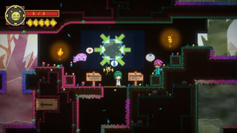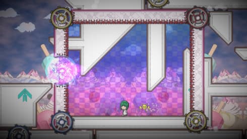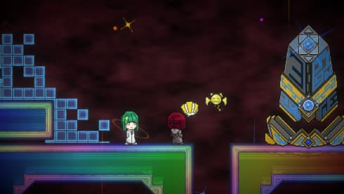 Star Leaping Story 从女孩在实验室的觉醒开始,这成为寻找她过去答案的起点。她与以前的伙伴合作,揭开这个星球的秘密并找回丢失的记忆。在途中,小队遇到了看不见的外星生物,并面临一系列障碍。Star Leaping Story 的游戏玩法是一款二维动作平台游戏,借助特殊的混蛋机制测试玩家的反应能力。在跳跃或坠落时按下一个键可以让女主角以金色球体的形式与她的同伴结合,并在空中盘旋。随后的定向输入可以连续进行多达五个猛拉,并且它们的计数器在着陆后会恢复。游戏不提供对失败的惩罚,以死亡和重生的循环作为从错误中学习的主要机制,剧情以成熟的配音呈现,其中涉及 10 多名演员,他们分别扮演了神秘科学家和主角的同事。他们的作品定义了白衣服女孩与她在旅途中遇到的人物之间对话的性质。这个听觉组件与游戏玩法密切相关,您必须带领一个小队穿越地球的各个区域以揭开它的秘密。
