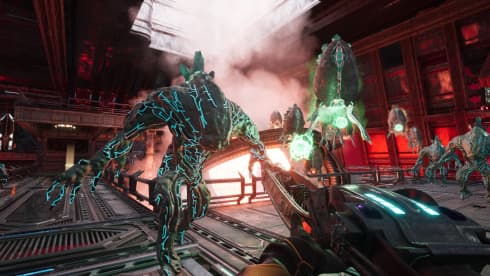 Exovoid Carnage 是一款快节奏、基于波浪的竞技场射击游戏,将您带到一个外星人出没的空间站。一旦你踏上漂浮在太空中的巨大堡垒利维坦站,你就会立即发现自己卷入了一场生存之战。你只带着一把枪,面对无情的外星人浪潮。一旦你开始,很明显没有时间可以拖延。你需要快速射击、移动和思考,因为外星人不会等你喘口气。每一波都变得更加困难,迫使您将自己的能力和反应能力发挥到极限。您玩的越多,您解锁的奖金就越多,让您有机会获胜。速射和双倍伤害只是冰山一角。还有龙卷风锯,这是一种致命的工具,可以像黄油一样切开敌人。每次你死了,你都会被送回去再试一次,但这次你从之前的游戏中获得了一些好处。这给了你额外的动力来提高你的技能,打破你自己的记录,并在车站周围继续前进。整个游戏变成了对毅力的考验。这完全是关于你能坚持多久,以及在赔率赶上你之前你能摧毁多少外星人。Exovoid Carnage 中的每一刻都是关于下一波的耐力和生存。