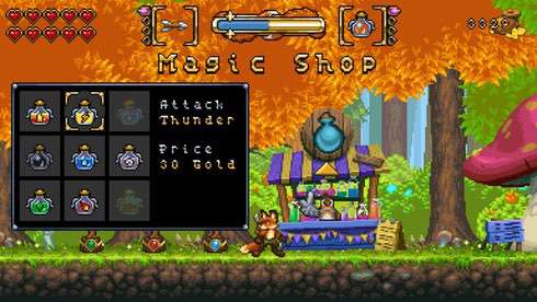在 FOX n FORESTS 中,重点是一只名叫 Rick 的狐狸。这是一个聪明而狡猾的英雄,他饿了,想抓一只鸟。但这被一只名叫帕蒂的鹧鸪看到了,他建议不要碰这只美味的鸟,而是去冒险,这样你就可以获得不可替代的财富。小狐狸当然无法拒绝这一点。Partridge 邀请主角与一群为童话森林带来邪恶的绿眼睛部落作战。他们的路径将通向一棵老树,它会要求主角提取特殊树皮的四个碎片。它的每一部分都允许您控制其中一个季节。古老的植物赋予了狐狸一项特殊技能,可以在此过程中帮助他 – 这就是改变季节的能力。为了按照他们认为合适的方式改变季节,主角可以使用一把末端带有锋利刺刀的魔法弩。这将允许关卡进一步推进,但这样的需要主角使用法力。弩也与英雄的特殊控制相关联。不仅可以连射三箭,还可以当刀刃使用。在此过程中,用户可以收集金币,这可以让您为病房购买新动作,这在战斗中会很有用。