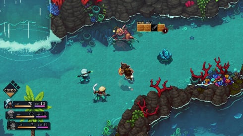 Sea of Stars 发生在 The Messenger 的世界中。主角 Valeria 和 Zale 接受了军事训练,以保护他们的家园免受强大的炼金术士创造的生物的侵害。冬至之子使用 Eclipse 的特殊能力,可以击败怪物。随着您的进步,最多 6 个角色将加入小队,游戏玩法包括回合制战斗、在开放地图中旅行和解决谜题。在后一种情况下,英雄的特殊技能会派上用场 – 在一天中的光明和黑暗时间之间切换。您将访问各种地点,包括城市、地牢和草原。自由移动,不受运动场的牢房束缚。游泳、爬岩石、抓住壁架和跳过悬崖.在旅途中,您将遇到 20 多个不同的 NPC,从而导致故事任务。这些任务充满了冒险精神,并强调了友谊的重要性。遇到怪物时,回合制战斗开始。英雄使用打击、能量提升、大规模攻击以及格挡攻击和对手的法术的组合。杀死怪物会给你经验和金币。购买新的盔甲和武器。升级团队的能力并提高装备的属性。不要忘记收集食物以保持您的健康处于适当的水平。