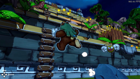 Ruffy and the Riverside 是一款游戏,玩家角色使用一种叫做 SWAP 的能力来改变环境。此功能允许您直接复制和应用纹理,从而更改对象和表面的属性。玩家可以将冰变成熔岩,将瀑布变成藤蔓,或者用石头制作木头来建造一艘船。Raffi 使用这项技能在各个位置移动,解决空间谜题,清理路径,将坚固的墙壁变成废墟。Ruffy and the Riverside 的主要情节集中在面对试图摧毁世界核心的对手 Groll。在穿越河滨的旅程中,主角遇到了十几个给出任务的角色,包括蜜蜂皮普、鼹鼠埃德勒爵士和西利亚等同伴。活动不仅限于主要故事情节,还包括支线任务、挑战、乘坐秘密铁路以及与 Fish Gang 的鲨鱼相遇。游戏玩法在 3D 探索和单独的 2D 关卡之间切换。在这些 2D 区域中,重点转移到平台和宝藏收集元素上,这需要使用 SWAP 来管理障碍并通过某些障碍。在整个冒险过程中,用户收集各种物品,例如蝴蝶、硬币和有助于通行的当地 Etoi 生物。