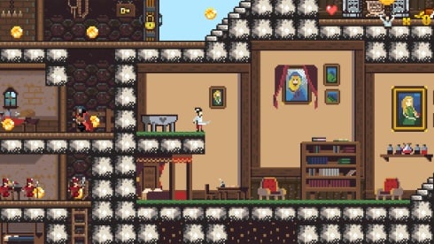 Janosik – Highlander Precision Platformer 名副其实。这是一款横向卷轴平台游戏。独立项目具有手绘的二维图形。它是以像素艺术的风格制作的。该游戏之所以脱颖而出,是因为它的灵感来自斯洛伐克民间传说,并且是献给 Jánošík 的。这是神话传说中英雄的名字,在他的活动上类似于罗宾汉。他还从富人那里拿钱,分给穷人。这个角色拥有从女巫那里收到的文物。这些神奇的物品保护他免受子弹的伤害,让他跳得更高,并赋予他其他超人的能力。在这个电子游戏中,根据情节,他必须拯救他的朋友,并与绑架他们的伯爵报仇,他的名字是 Von Zur。故事通过过场动画和带有文本对话的场景呈现。要沿着它们前进,您需要克服障碍并寻找钥匙。您必须根据记忆导航地形。要完成这些关卡,你需要找到并释放被绑架的人。游戏进度保存在篝火上。你也可以用它们来补充生命条。玩家有能力跳跃、左右奔跑、滚动、挥动鞭子、按下按钮、射击手枪(如果有弹药)和使用炸弹(它们的供应也不是无限的)。这些地点有秘密地点和装有黄金的箱子。硬币散落在整个阶段,还有陷阱、敌人(士兵和动物)和开关。