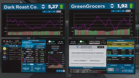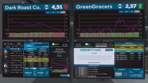 The Invisible Hand 的主角在一家证券交易所找到了一份工作。这里有很多钱在流通,有真正的致富机会。但是,您能否考虑到所有风险,完成非法交易并躲避警方的追捕?参加热销和各种活动。监控社交群体中的情绪,以正确预测市场中的进一步事件。通过提高或降低原材料的价格来管理原材料的价格。选择合适的时机并购买股票。阅读最新消息并及时了解全球经济形势。游戏的主要目标是赚取尽可能多的钱。为此,您需要完成老板设定的所有目标。要勤奋,这样你就不会被解雇。赚取的资金应该进行有利可图的投资,以获得坚实的资本。最后,通过查看利润图表来评估完成的工作。使用统计数据,更高效地工作。