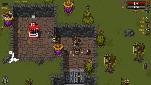 Edge Of Dead: Under A Uranium Sky 是一款自上而下的射击混合体,带有简化的 roguelike。该游戏还具有 Bullet Hell 类型的元素。该项目是在科幻背景下制作的。剧情讲述了一群人穿越外星星系并与当地土匪、外星人、怪物、机器人和其他生物作战的冒险经历。有 3 个角色可供选择。除了他们的名字和外观之外,他们在速度、准确性、护甲、伤害、攻击距离、生命值和初始武器方面也有所不同。如果战士或战士死亡,用户将返回菜单并选择英雄。在那之后,他将不得不重新开始,电子游戏的名称可以大致翻译为 Edge of the Dead: Under the Uranium Sky。其中的游戏玩法有点让人想起 Nuclear Throne 和 Enter the Gungeon。位置是随每次新运行随机生成的。卡片被划分为多个房间,即使战斗发生在露天。当你进入一个新房间时,英雄会和敌人一起锁在那里,直到他杀死所有对手才会被释放。与敌人的枪战伴随着血和肉。在关卡中,有可以移动的炸药桶和装饰物品。还有枪支和有用的物品:手榴弹、霰弹枪、植入物、电锯、斧头等等。