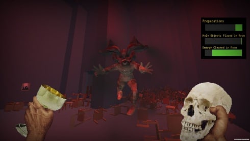 A Hell of an Exorcist 是一款驱魔人模拟器,您需要在其中通过从当地人那里接受各种差事来驱魔。主角是一位拥有巨大肌肉的牧师。教宗 50 岁了,他致力于驱逐当地居民家中的恶灵。成功完成任务后,会累积金钱,这些钱可以花在各种升级或更有效的设备上。驱魔人携带各种设备,帮助他识别恶魔并有效地与它们作战。鉴于牧师英雄的力量和力量,没有人禁止用拳头攻击怪物.A Hell of an Exorcist 的游戏玩法是一款带有侦探元素的第一人称恐怖游戏。到达该位置后,您需要探索房子是否有超自然活动。在那之后,有必要确定您必须与之战斗的精神类型。主角拿着一盏特殊的灯走路,照亮了他的路。与鬼魂战斗时,有一个重要的细微差别:您需要对业主的财产造成尽可能少的损害。环境因其交互性而脱颖而出。例如,您可以打破衣柜或家具。财产损失被扣除。如果没有为驱魔赚取最大金额的目标,则可以忽略此规则。