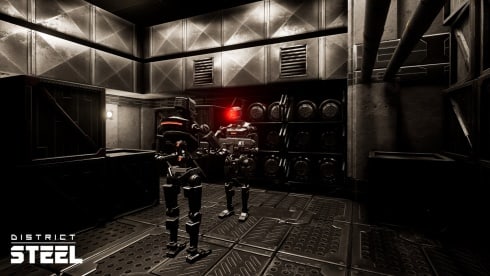 District Steel 是一款未来主义动作游戏,围绕着人类试图在人工智能接管地球之前阻止它展开。在不久的将来,人们将发明人工智能并创造机器人,帮助社会解决任何问题,并在最初的几十年里为社会做所有工作。但 AI 最终开始迅速发展,并认为它不想为人服务,这也是它最终造反的原因。现在他正在进行全面攻势,并将完全准备好覆盖地球上的所有技术,只有主角才能阻止控制论敌人。District Steel 的主角配备了一只特殊的手臂 – 植入物,他能够在一个小房间里短暂地减慢时间。另一方面,他已经准备好开火了。主要武器类型将是未来派手枪、冲锋枪、自动步枪。对手能够承受很多伤害,但也有弱点 – 头部、电池,因此你需要瞄准那里。但是,它可以通过有效的消除来恢复,例如快速连杀或爆头。此外,主角能够跳得很高,几乎可以立即移动,甚至可以在空中短暂盘旋。