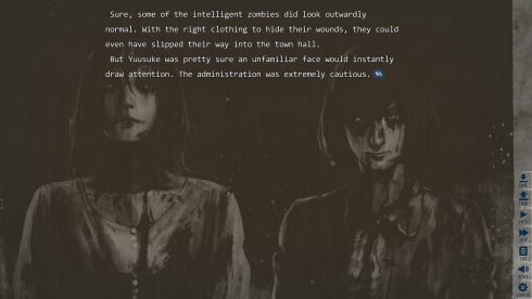 在 I Walk Among Zombies Vol. 3 中,玩家将不得不在后世界末日的环境中享受冒险,人类被迫在僵尸洪水中生存。用户将观看一群幸存者,他们必须找到救赎和治愈可怕疾病的方法。该项目以恐怖视觉小说的黑暗风格制作,玩家需要代表主角不断做出决定。在通过 I Walk Among Zombies Vol. 3 的过程中,用户将不得不:代表主角做出负责任的决定,这将影响正在发生的事件和情节的发展.在角色之间建立友好或浪漫的关系,以及与女孩参与浪漫和婚外情.享受为成年游戏玩家设计的轻松色情, 用户需要寻找在冒险中生存的方法,以及在过场动画中选择动作或选择对话中的台词,以建立关系并将故事的发展引导到正确的方向。将有可能实现所呈现的结局之一,这可能会导致积极或消极的结果。使用者需要避免与僵尸见面,并寻找有助于拯救人类的药物。