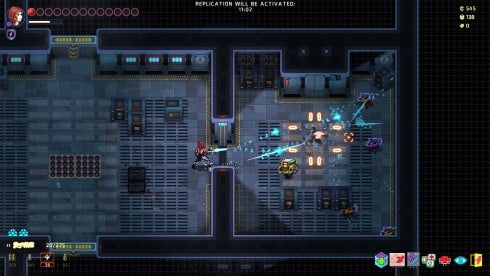 REPLIKATOR 是一款科幻 Roguelike 游戏。行动发生在“人造卫星”空间站上。银河雇佣兵袭击了该设施,以揭露 Project REPLICATOR 的阴谋。玩家从上方观察守卫,穿过走廊位置并与对手战斗。竞争对手是无人机、外星生物、放射性怪物和机器人。每个敌人都有自己的长处和短处。某些武器对特定对手有效,而对其他对手则较弱。渐渐地,用户会找到新的设备,并在一棵大树的帮助下升级病房。在游戏中,有 4 个可玩角色,初始能力和首选装备各不相同。强大的大炮可以一次消耗几个能量点。大多数对手都会发射子弹,如果你有时间做出反应,可以很容易地躲避。这些领土包含了无数的危险:敌人,怪兽,陷阱,还有谜题。武器的统计数据是程序生成的,并且散布在车站各处的中心角色有许多升级。