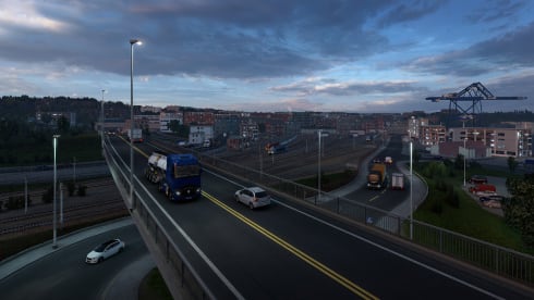 Euro Truck Simulator 2 – Scandinavia 是一个附加组件。然而,它有如此多的创新,以至于它拉动了一部成熟的续集。开发人员对引擎进行了研究并改进了图形。白天和黑夜的变化开始看起来更加真实。不同天气状况的显示也得到了改进。他们改善了照明和天空。由于新的渲染,纹理现在看起来更清晰,并且图片本身作为一个整体现在更具对比度。音响系统经过重新设计。在发动机、变速箱或气动装置运行过程中发出的声音开始在卡车的驾驶室中更可信地感受到。此外,卡车司机模拟器也得到了更好的优化。它还有更多的成就。货物种类增加了 80 种。其中包括建筑材料、风力涡轮机部件、海鲜甚至牲畜。一些货物需要用新的拖车和半挂车运输。它被认为是该项目最大的 DLC 之一。地图的大小显著增加。3 个国家出现在上面:丹麦、瑞典和挪威。增加了 27 个城市,包括哥本哈根、斯德哥尔摩、卑尔根、奥斯陆。开发商并没有忘记这些景点。创作者表现出对细节的关注,因此定居点的建筑各不相同。在创建地点时,考虑了斯堪的纳维亚物流在现实生活中的细微差别。因此,视频游戏拥有 12 个渡轮码头和大型集装箱港口。驾驶时,您可以遇到现实生活中的物体。例如:斯堪尼亚和沃尔沃工厂。事实证明,道路上的虚拟交通更加多样化,机器人自己也学会了充分驾驶。