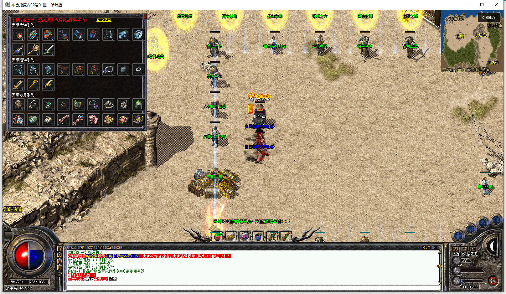 版本推荐:4.5星+,这版本玩起来就一个爽快,是属于复古版本的那种爽快,不是单职业无限刀那种爽,三职业都有一个职业专属斗笠,需要不断升级激活buff,其它的玩法就简单粗暴了,没有生肖,没有四格,就是简单粗暴的1.70的玩法,还是极品+6的版本,是单属性+6而不是所有极品属性之和+6,地图里都设计了影藏地图还有强化boss,新加了一批装备,还不错。
