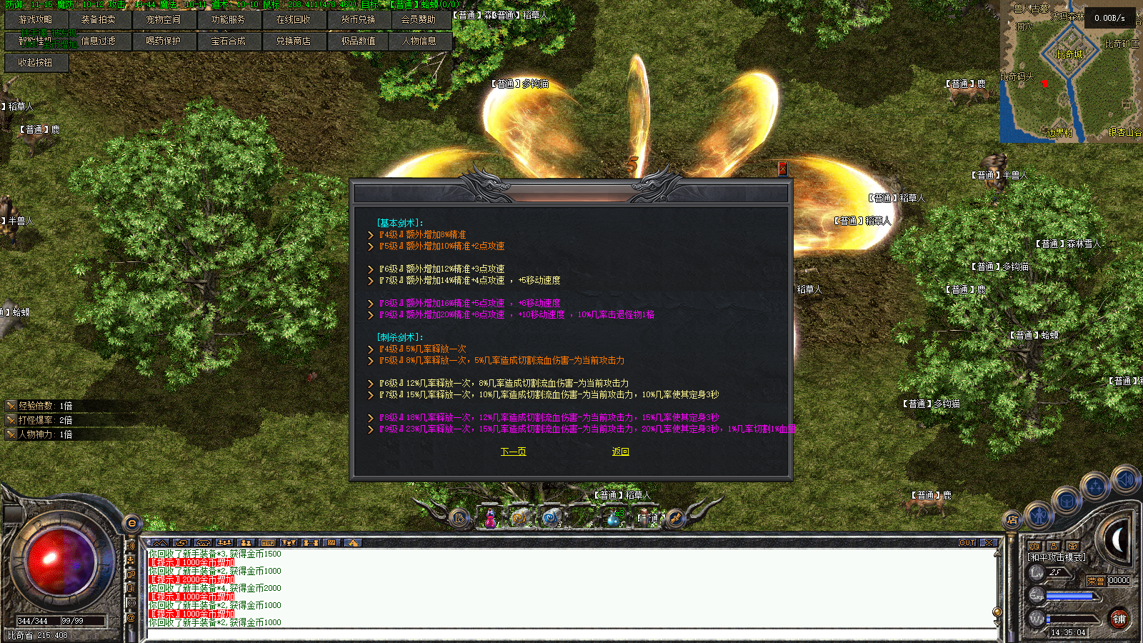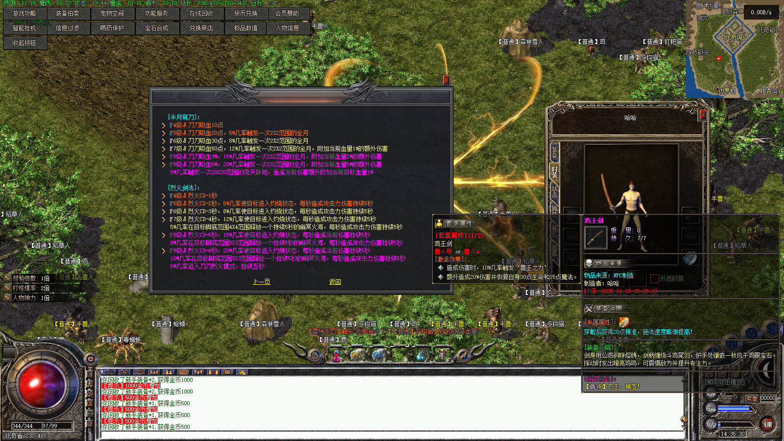 比奇每小时刷8只鸡王 有几率出鸡王剑、 这个武器对于 战士来说是神器、 加了大量准确、时装武器