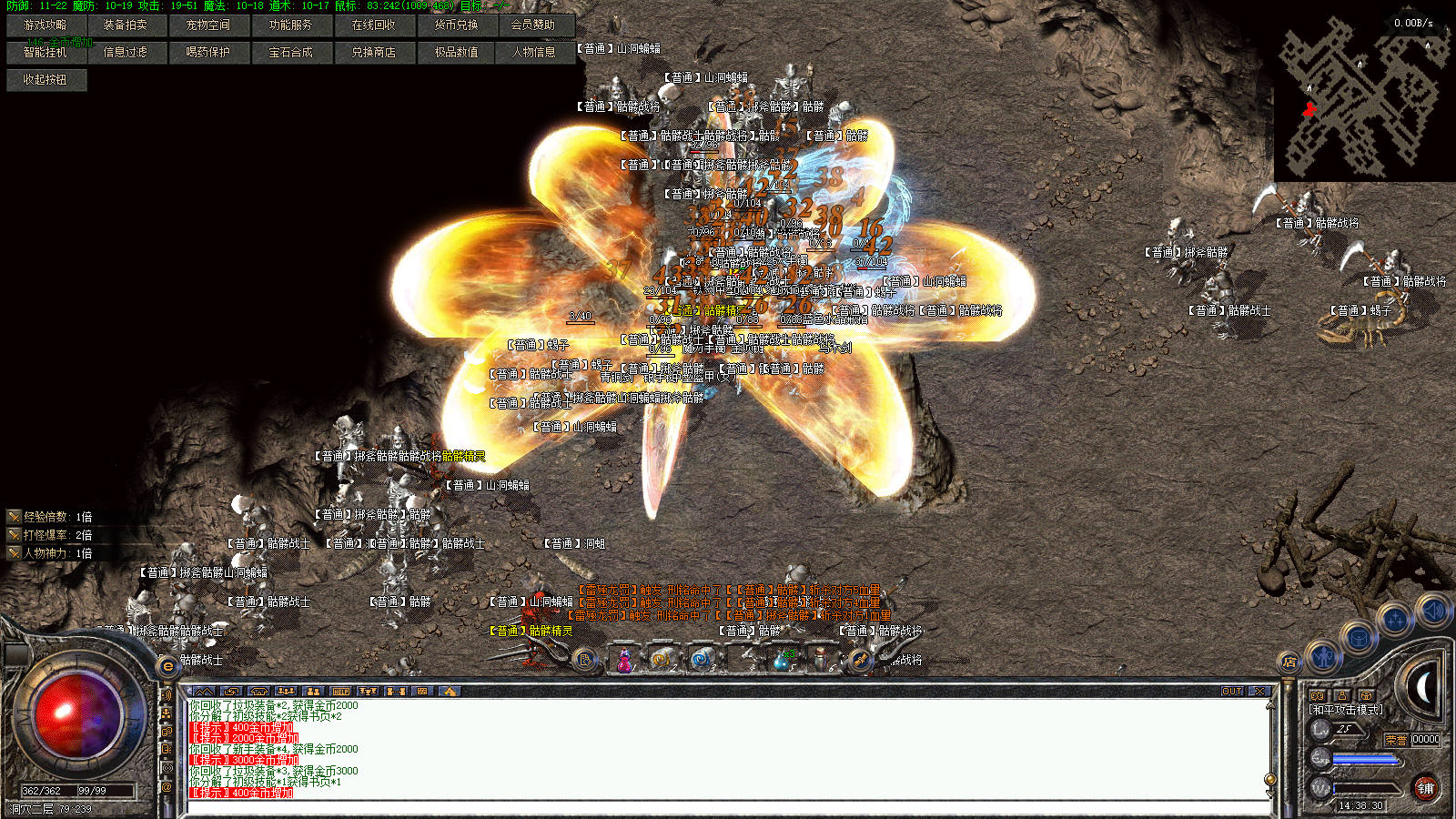 幽冥龙炎:8X8的15秒CD伤害技能,持续5秒,每秒造成8X8的AOE伤害,几率冰冻怪物,必定推开一格(刷钱的神技)