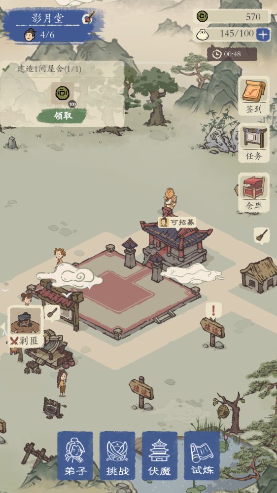 所有要观看的视频都可以跳过,挺休闲的一个游戏,打造宗门,招募弟子,经营门派