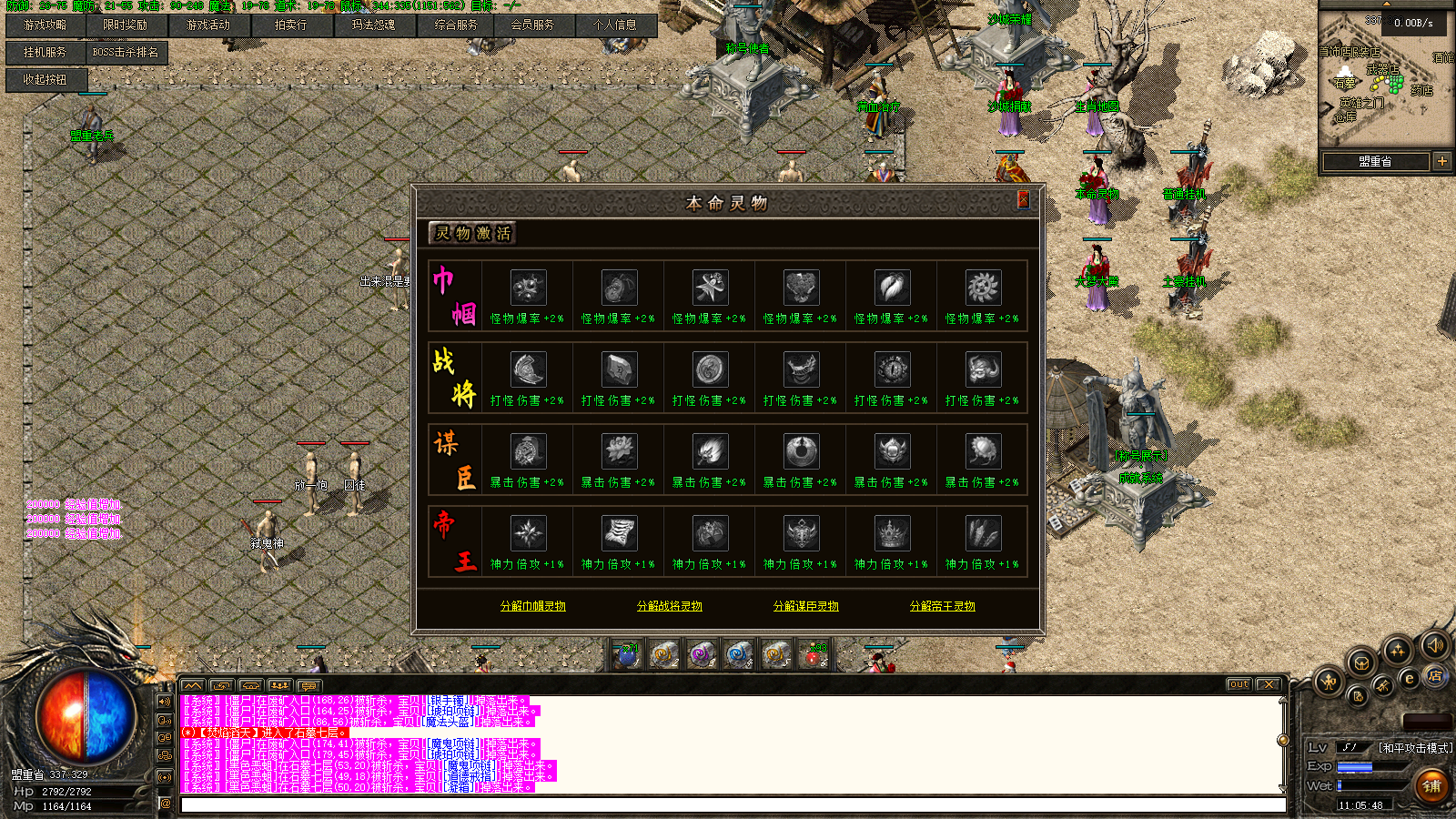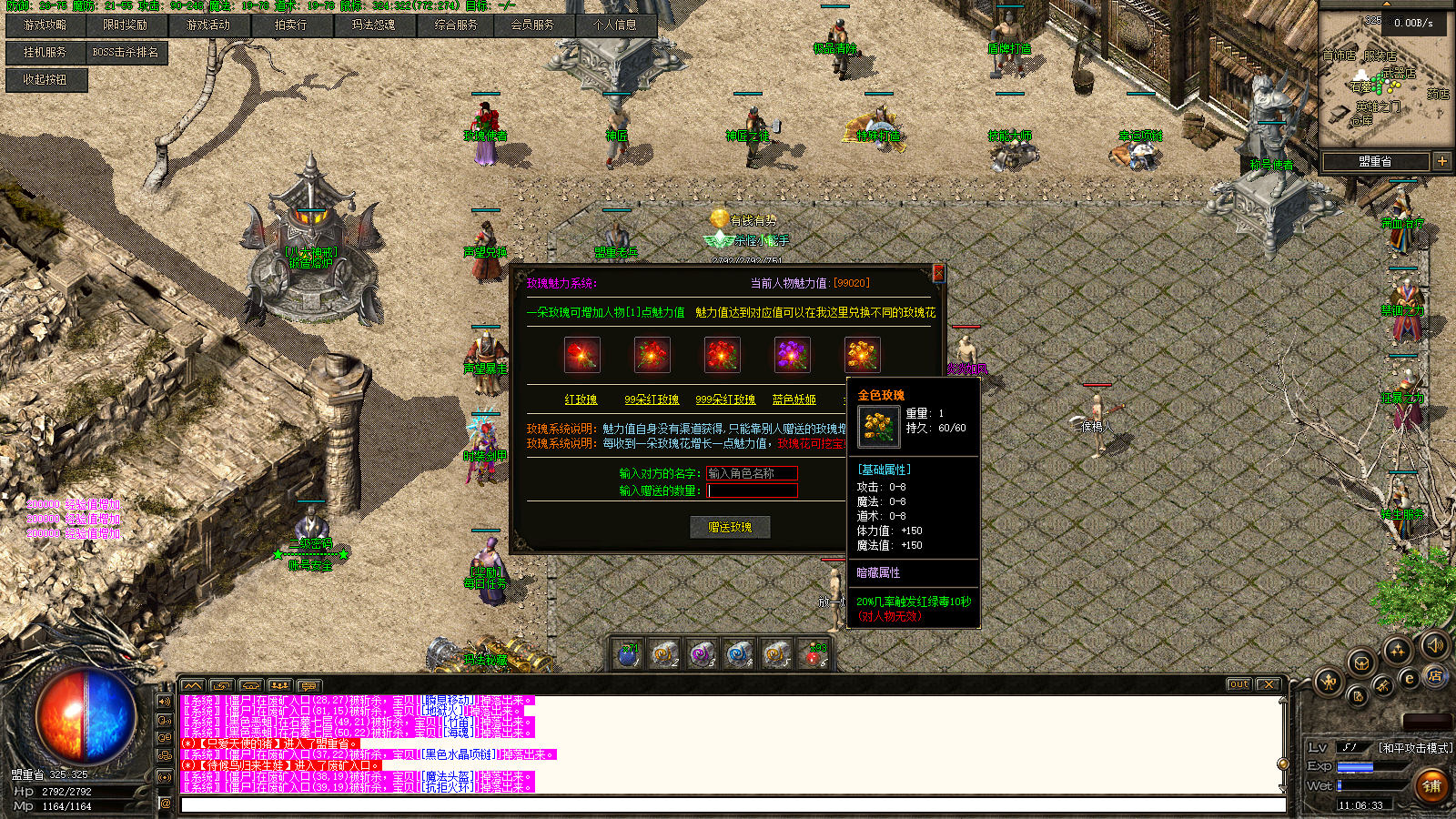 版本推荐:4.5星+,可玩度不错,玩法比较丰富,天命,搜集,各种合成,地图,装备,怪丰富,复古到微变的类型,怪物难度偏中等,开局一定要去土城找血灵仙子NPC,然后花3000万金币合成这个女神玉佩,佩戴以后可以每秒恢复HP和MP80+生命值的0.5%,这个非常重要,不然大多数boss都要扛不住。另外还有一件装备对战士来说也必须去合成,就这个金色玫瑰,需要修改变量U99,合成以后可以20%给怪物上毒10秒。版本的升级会比较慢,升级和天命挂钩。可玩度很高,建议上手。