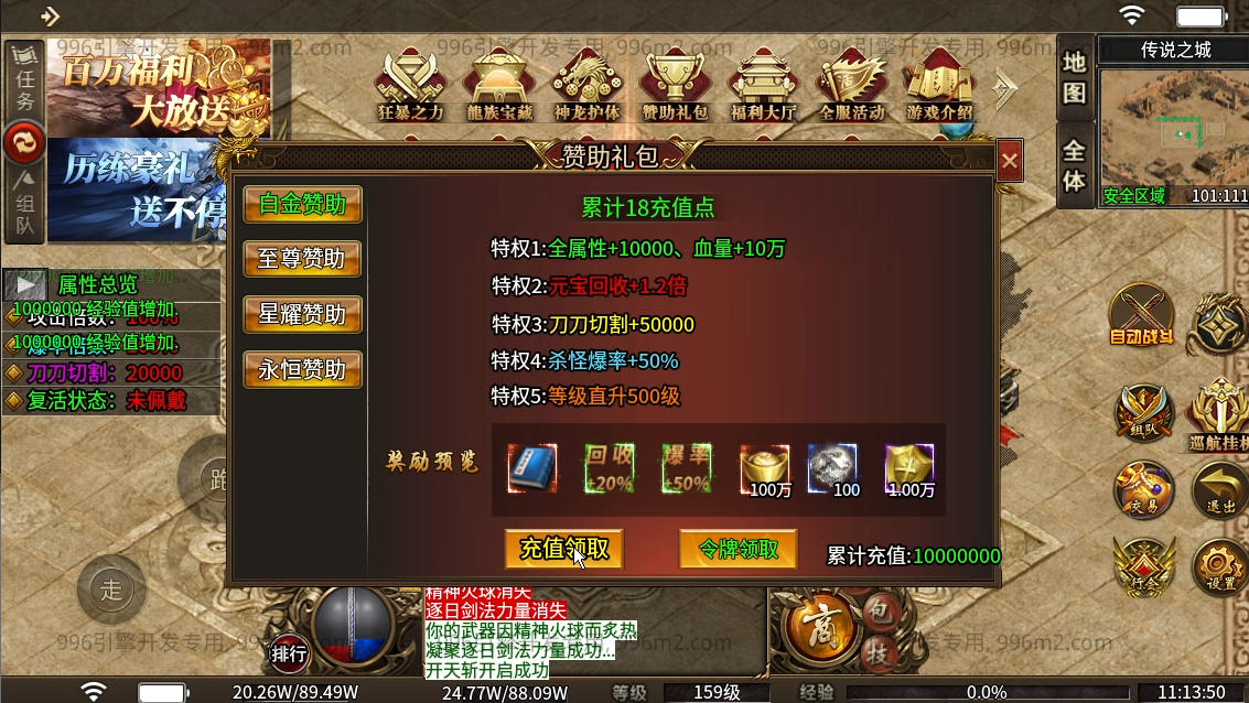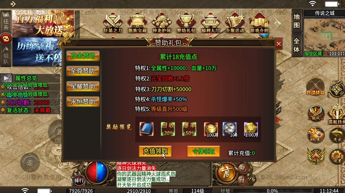版本推荐:4.5星,没啥好介绍的这版本,单职业的玩法,有点商业端的感觉,996引擎的手机类型的版本,早玩,后面还不知道996那边会不会有变动,回头有变动说不准要玩不了。