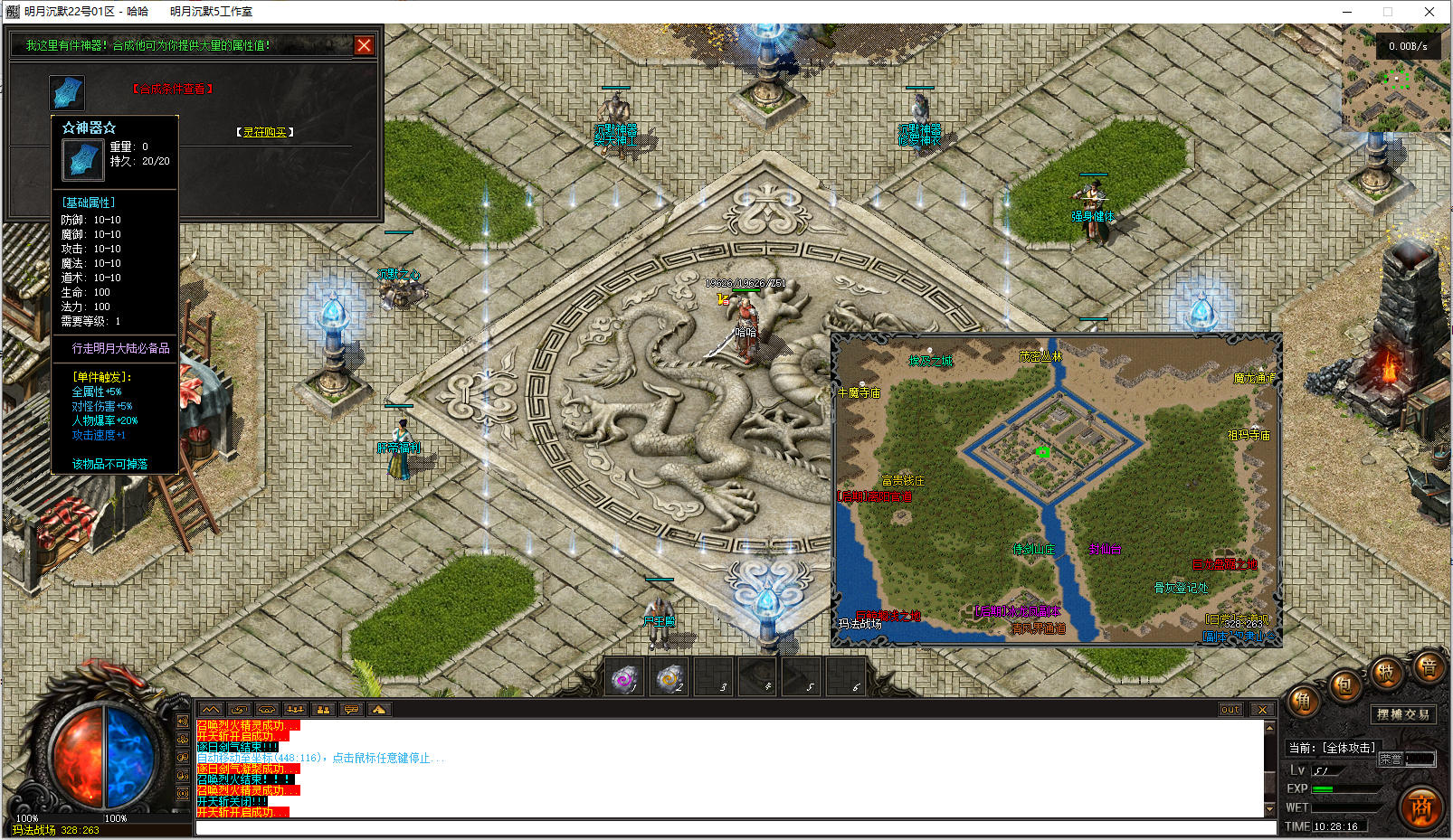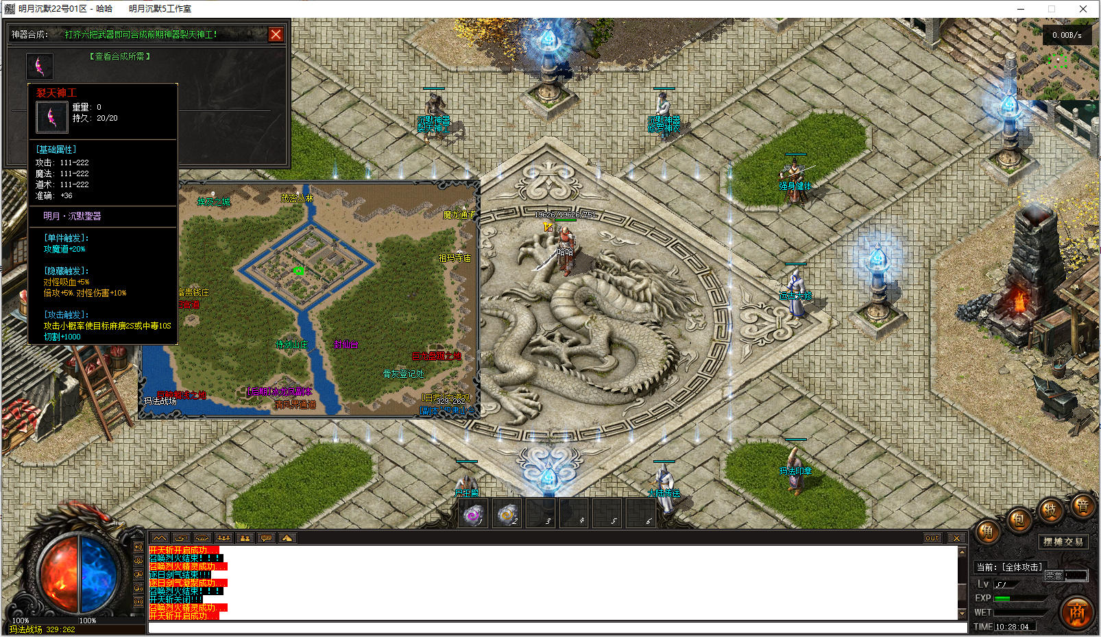 前期玛法印章,玛法创世纪,真天宫护符等物品必合,有效提升打怪速度且合成简单,材料好爆。