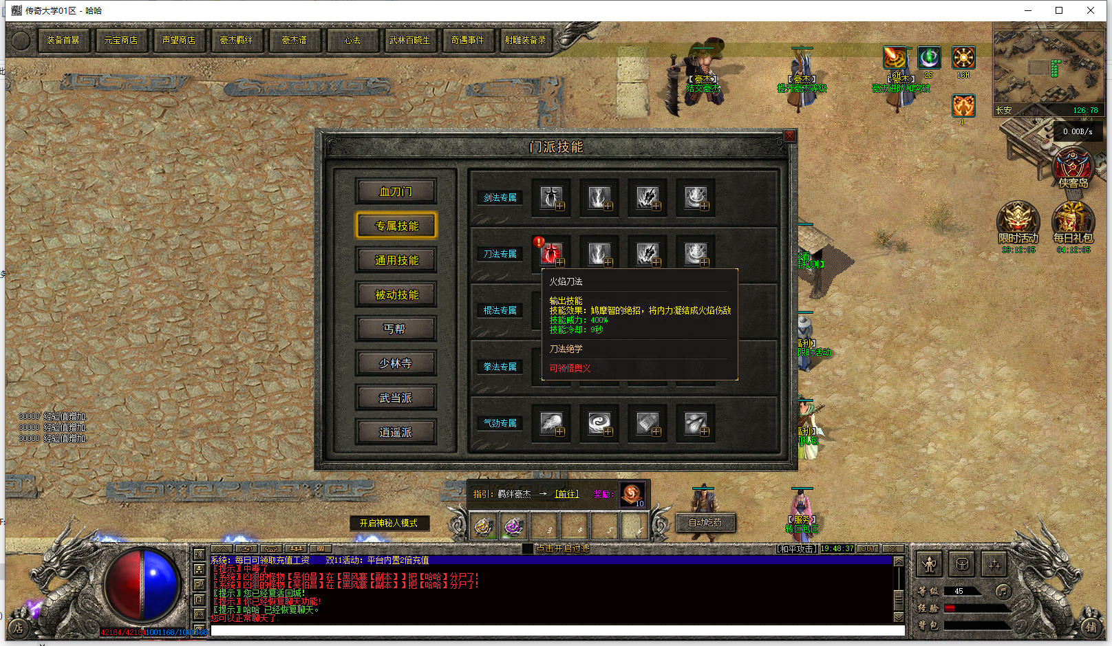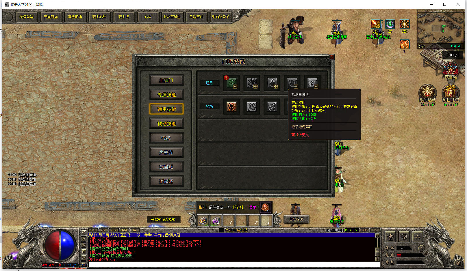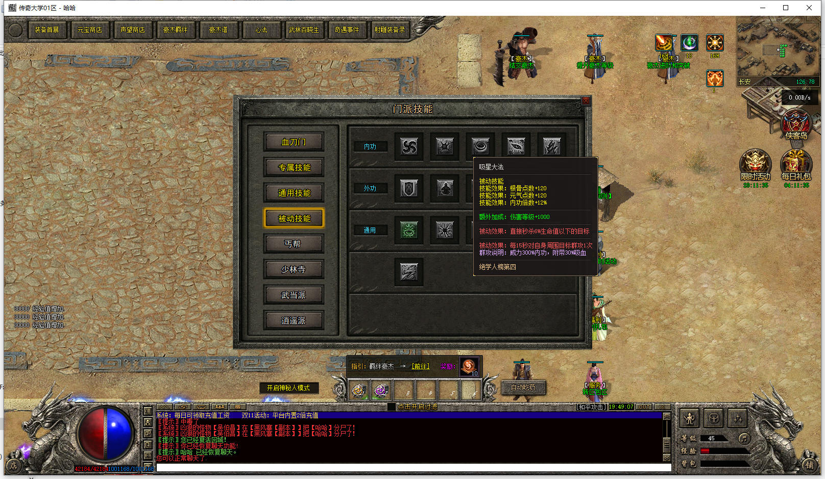 版本推荐:5星,这版本挺牛的,是个特色版本,射雕英雄传做背景,五个门派,相当于五个职业,每个门派都设置了对应门派技能,就是这个门派技能设计得很有意思,技能还可以抽取奥义。这么多多技能的版本,这个版本的设计绝对算靠前的了。另外版本的玩法也很不错,技能能设计成这样子的版本,装备和地图还有怪的设计都细节得很。不可能会随便乱搞,不然也没必要这么设计技能了。