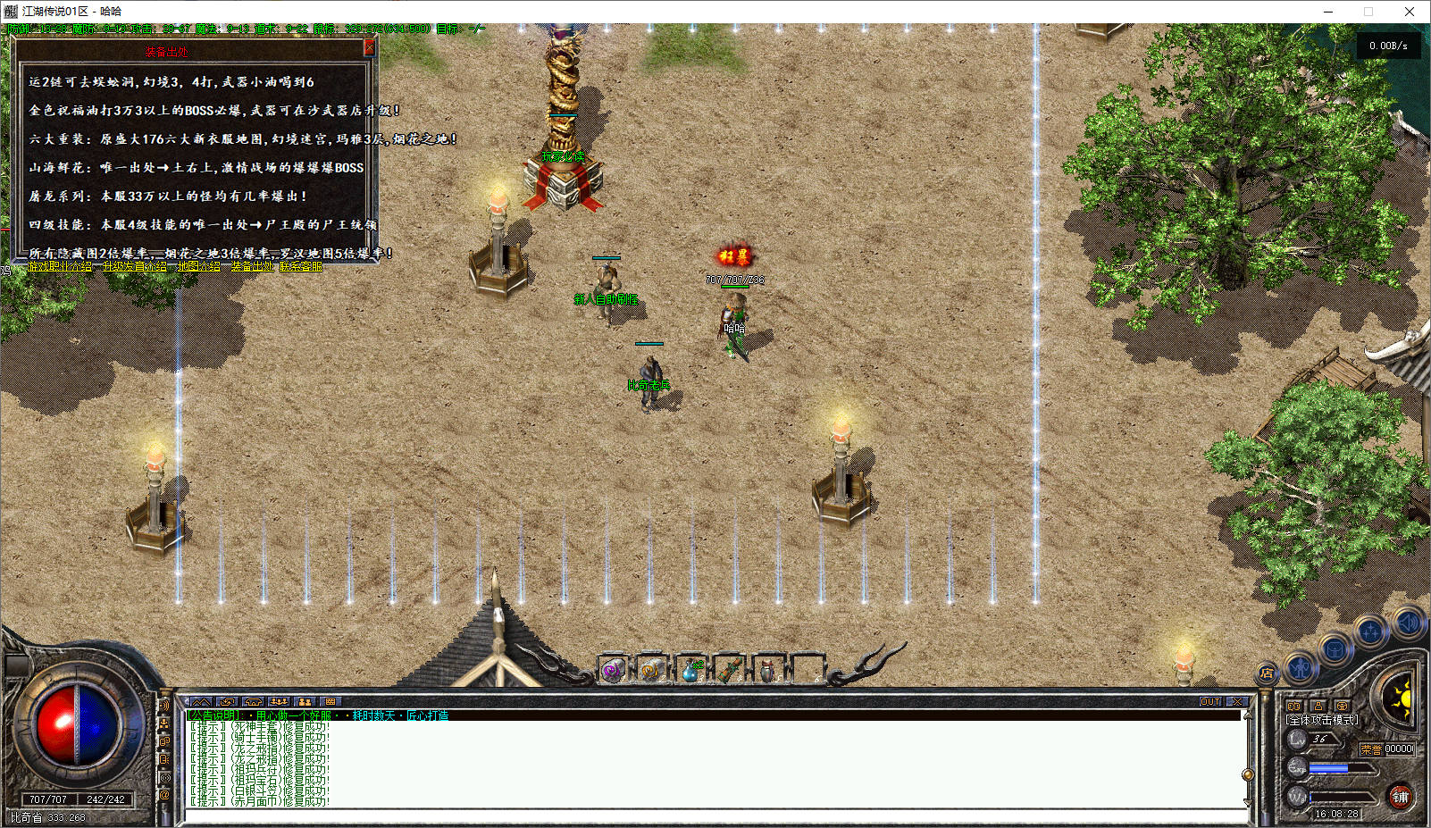 三职业技能都有强化,但是感觉战士最吃亏只强化了刺杀和烈火,但是法师诱惑的宝宝和道士等级高了以后神兽都会升级并且48级以后还能召唤两只强化神兽。原一点七六各大地图的最后一层新加了不少boss还有一些新boss。封魔殿,桃源之门,赤月老巢,祖玛教主之家里面以前不能进去的洞口都做了隐藏地图,里面boss还挺多。隐藏地图都是2倍爆率,烟花之地3倍爆率。可以转生,不过每次转生都需要对应的三职业武器,比如一转就需要一把井中月,一把魔杖和一把无极棍。转生是进入二大陆的条件,每一次转生会给100属性点,这属性点我总觉得很鸡肋,17个属性点才能加一点攻击。